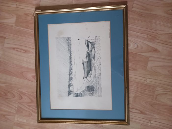 La Saône et le vieux pont de Saint Laurent. cadre abimé à un angle. Encadrement professionnel