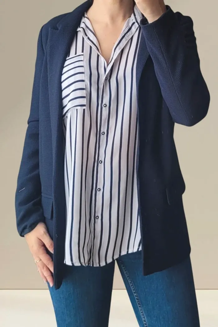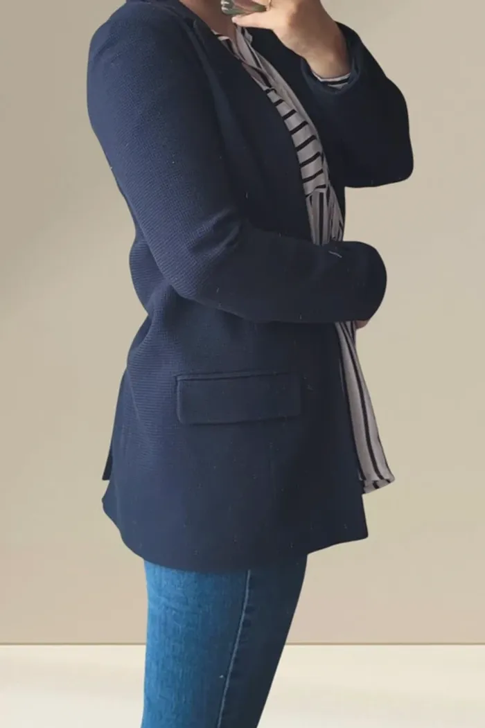 Blazer long Kiabi Taille S Bleu marine, texturé En très bon état Bonjour à toutes et tous 🤗, Bienvenue sur mon dressing ! Ici vous trouverez des articles en tous genres, toutes tailles et aux styles variés. Il y en a pour tout le monde 🙂. Tout est disponible . En ce qui concerne les vêtements, tout est en parfait état voire neuf. S'il y a toutefois un défaut, je le mentionne dans l'annonce. Maison non fumeurs , sans animaux . Je vais au relais tous les 2 ou 3 jours. Votre colis vous parviendra rapidement. Il arrive malheureusement parfois que les acheminements prennent du retard. Si c'est le cas, j'en suis navrée par avance j'aurais tout fait pour pouvoir vous satisfaire. Les vêtements sont portés sur chaque annonce. S'ils ne le sont pas, c'est qu'ils ne me vont plus. Je suis désolée, je n'ai pas trouvé de remède miracle 😅. Je suis ouverte aux négociations, vendeur pro ne signifie pas prix exhorbitants 😏. Je ne fais pas de réservations, ça c'est la faute aux acheteuses fantômes 👻 En espérant que vous trouverez votre bonheur, à très vite😊 #dpp_femmetailleS