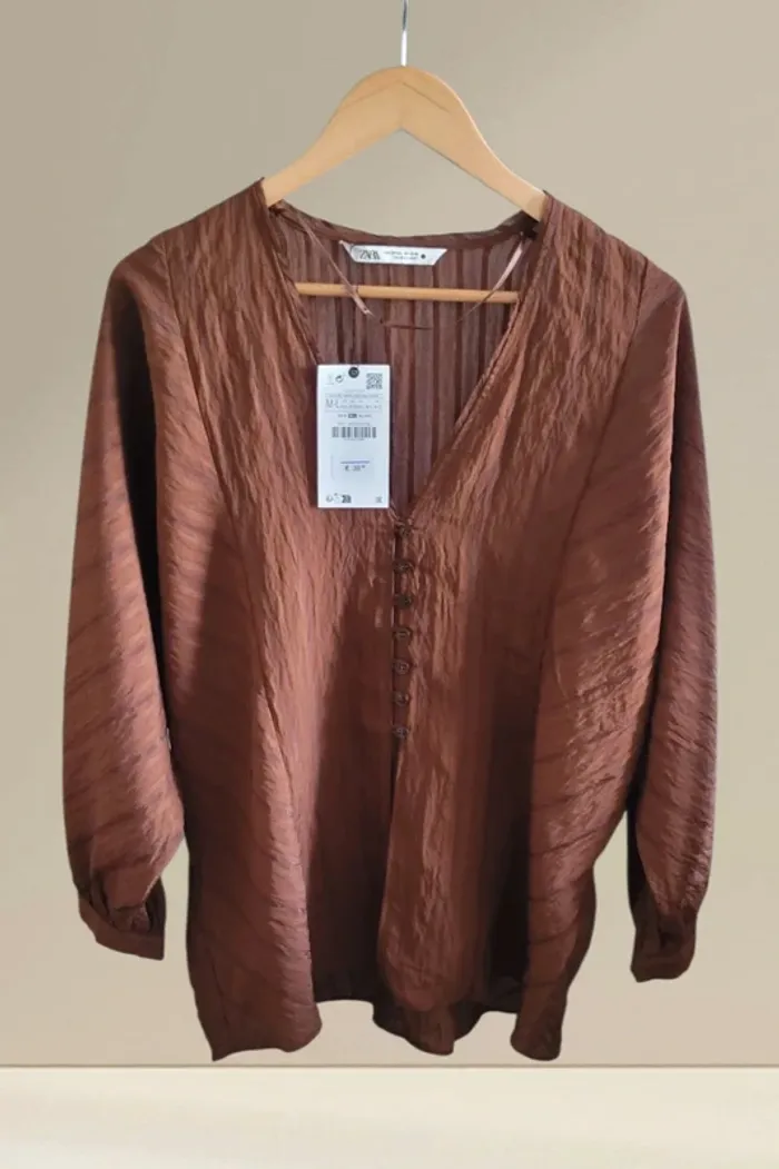 Blouse manches longues Zara Taille M-L Oversize Marron Jamais portée, voir photos Bonjour à toutes et tous 🤗, Bienvenue sur mon dressing ! Ici vous trouverez des articles en tous genres, toutes tailles et aux styles variés. Il y en a pour tout le monde 🙂. Tout est disponible . En ce qui concerne les vêtements, tout est en parfait état voire neuf. S'il y a toutefois un défaut, je le mentionne dans l'annonce. Maison non fumeurs , sans animaux . Je vais au relais tous les 2 ou 3 jours. Votre colis vous parviendra rapidement. Il arrive malheureusement parfois que les acheminements prennent du retard. Si c'est le cas, j'en suis navrée par avance j'aurais tout fait pour pouvoir vous satisfaire. Les vêtements sont portés sur chaque annonce. S'ils ne le sont pas, c'est qu'ils ne me vont plus. Je suis désolée, je n'ai pas trouvé de remède miracle 😅. Je suis ouverte aux négociations, vendeur pro ne signifie pas prix exhorbitants 😏. Je ne fais pas de réservations, ça c'est la faute aux acheteuses fantômes 👻 En espérant que vous trouverez votre bonheur, à très vite😊 #dpp_femmetailleL