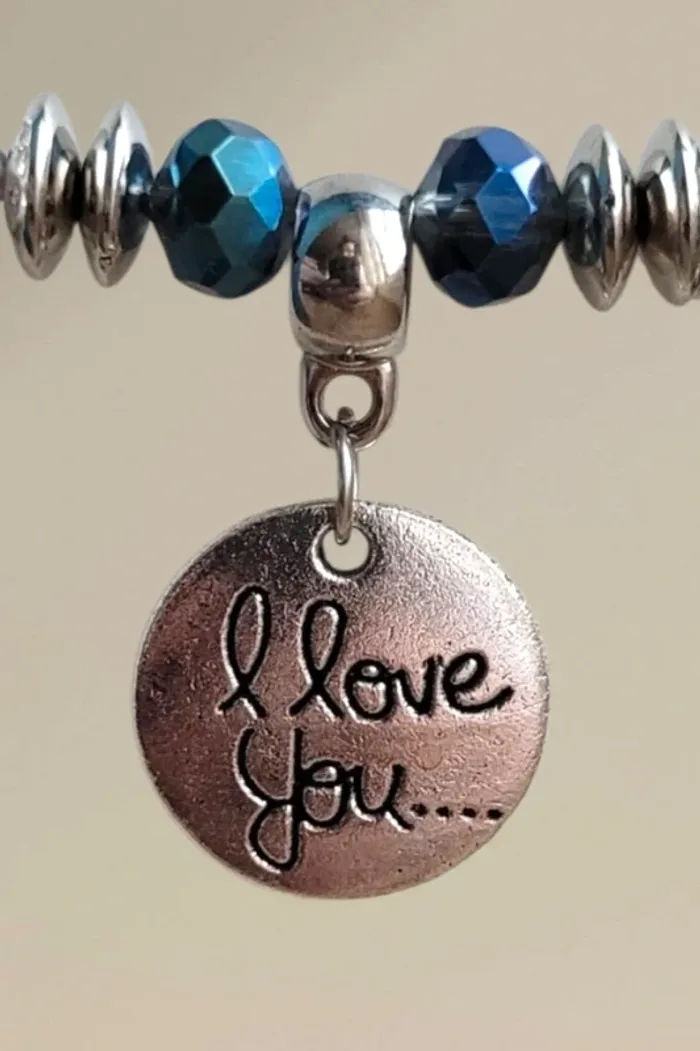 Bracelet Bleu et argenté Breloque "I Love You" Jamais porté Bonjour à toutes et tous 🤗, Bienvenue sur mon dressing ! Ici vous trouverez des articles en tous genres, toutes tailles et aux styles variés. Il y en a pour tout le monde 🙂. Tout est disponible . En ce qui concerne les vêtements, tout est en parfait état voire neuf. S'il y a toutefois un défaut, je le mentionne dans l'annonce. Maison non fumeurs , sans animaux . Je vais au relais tous les 2 ou 3 jours. Votre colis vous parviendra rapidement. Il arrive malheureusement parfois que les acheminements prennent du retard. Si c'est le cas, j'en suis navrée par avance j'aurais tout fait pour pouvoir vous satisfaire. Les vêtements sont portés sur chaque annonce. S'ils ne le sont pas, c'est qu'ils ne me vont plus. Je suis désolée, je n'ai pas trouvé de remède miracle 😅. Je suis ouverte aux négociations, vendeur pro ne signifie pas prix exhorbitants 😏. Je ne fais pas de réservations, ça c'est la faute aux acheteuses fantômes 👻 En espérant que vous trouverez votre bonheur, à très vite😊 #dpp_bijoux