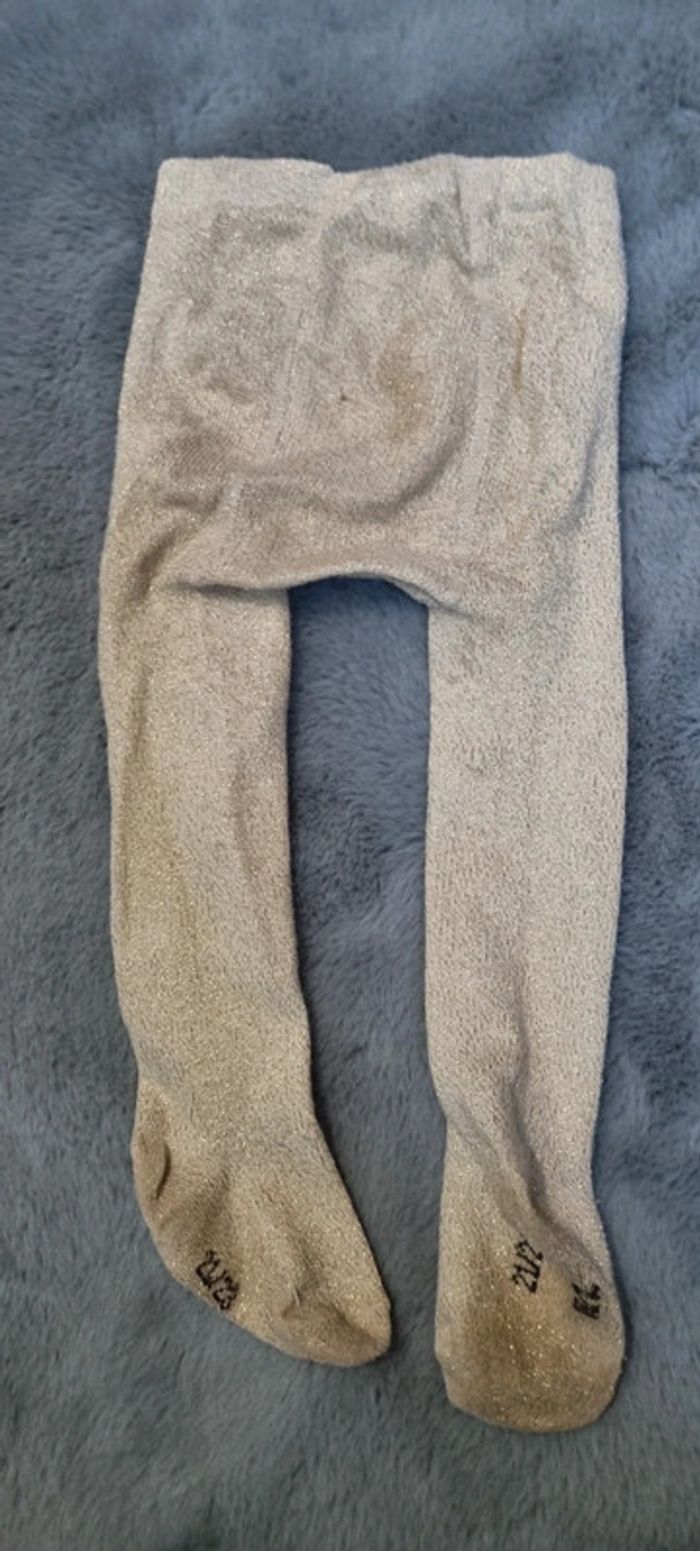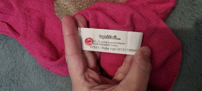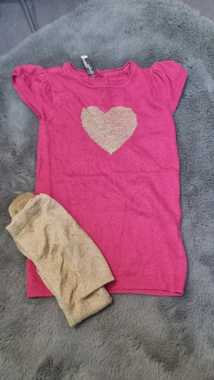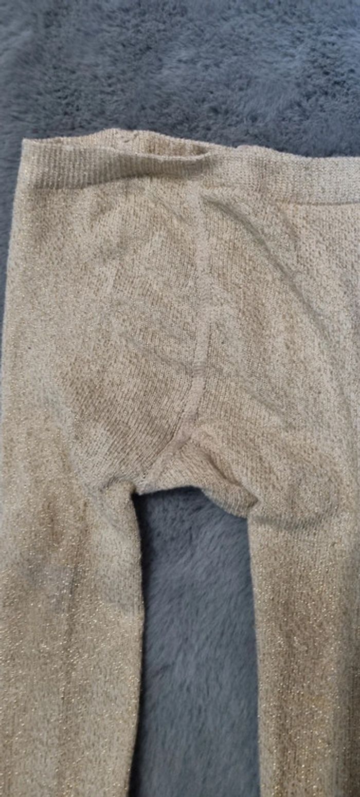 Robe collection cachemire de tape à l'œil avec collants dorés (je ne sais plus la marque). Les collants ont une petite tâche vers la fesse et légèrement détendus #18moisfillejuju250486 #taofille #tapealoeil