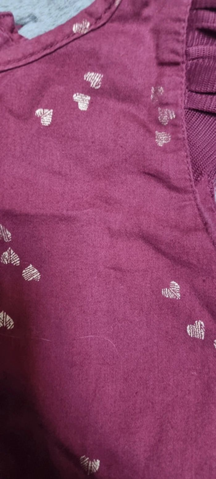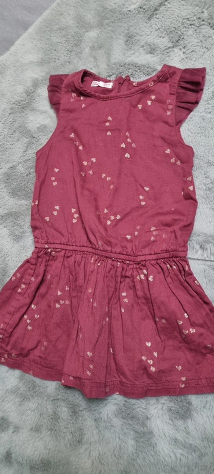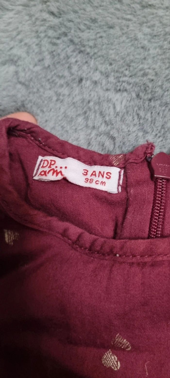 Robe manches courtes couleur bordeaux motifs cœurs dorés avec fermeture dans le dos #dupareilaumeme #dpam #3ansfillejuju250486