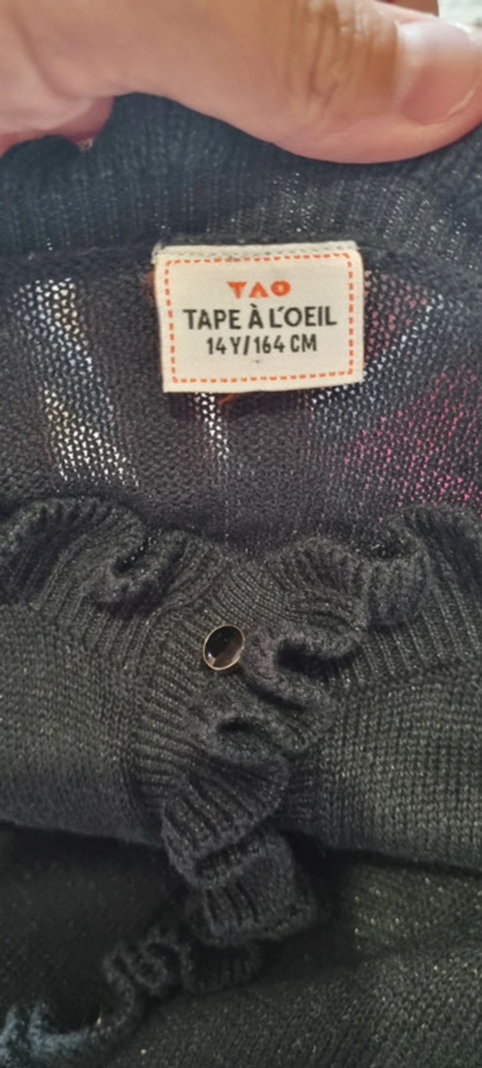 Gilet noir pailleté à boutons Très peu porté #14ansfillejuju250486 #tao #tapealoeil