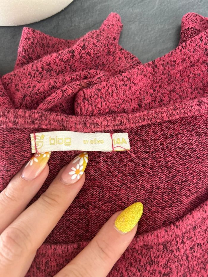 T-shirt manche longue avec noeud au milieu Taille 14 ans Marque Gémo En très bon état #charlinelolfille14ans N’hésitez pas si vous avez des questions