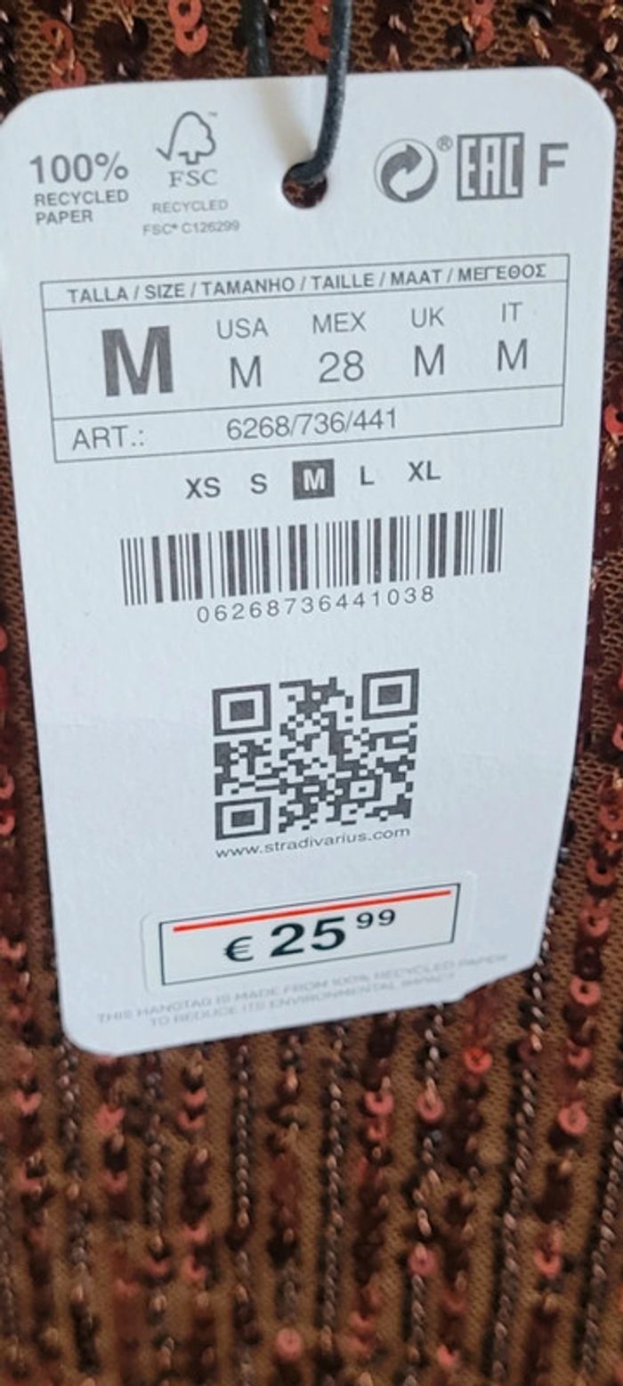 Robe de soirée Stradivarius Taille M Sequins bronze Jamais portée, voir photos Bonjour à toutes et tous 🤗, Bienvenue sur mon dressing ! Ici vous trouverez des articles en tous genres, toutes tailles et aux styles variés. Il y en a pour tout le monde 🙂. Tout est disponible . En ce qui concerne les vêtements, tout est en parfait état voire neuf. S'il y a toutefois un défaut, je le mentionne dans l'annonce. Maison non fumeurs , sans animaux . Je vais au relais tous les 2 ou 3 jours. Votre colis vous parviendra rapidement. Il arrive malheureusement parfois que les acheminements prennent du retard. Si c'est le cas, j'en suis navrée par avance j'aurais tout fait pour pouvoir vous satisfaire. Les vêtements sont portés sur chaque annonce. S'ils ne le sont pas, c'est qu'ils ne me vont plus. Je suis désolée, je n'ai pas trouvé de remède miracle 😅. Je suis ouverte aux négociations, vendeur pro ne signifie pas prix exhorbitants 😏. Je ne fais pas de réservations, ça c'est la faute aux acheteuses fantômes 👻 En espérant que vous trouverez votre bonheur, à très vite😊 #dpp_femmetailleM