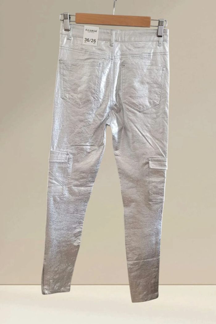 Pantalon skinny cargo Pull and Bear Taille 36 Taille haute Argenté, effet craquelé Jamais porté, voir photos Bonjour à toutes et tous 🤗, Bienvenue sur mon dressing ! Ici vous trouverez des articles en tous genres, toutes tailles et aux styles variés. Il y en a pour tout le monde 🙂. Tout est disponible . En ce qui concerne les vêtements, tout est en parfait état voire neuf. S'il y a toutefois un défaut, je le mentionne dans l'annonce. Maison non fumeurs , sans animaux . Je vais au relais tous les 2 ou 3 jours. Votre colis vous parviendra rapidement. Il arrive malheureusement parfois que les acheminements prennent du retard. Si c'est le cas, j'en suis navrée par avance j'aurais tout fait pour pouvoir vous satisfaire. Les vêtements sont portés sur chaque annonce. S'ils ne le sont pas, c'est qu'ils ne me vont plus. Je suis désolée, je n'ai pas trouvé de remède miracle 😅. Je suis ouverte aux négociations, vendeur pro ne signifie pas prix exhorbitants 😏. Je ne fais pas de réservations, ça c'est la faute aux acheteuses fantômes 👻 En espérant que vous trouverez votre bonheur, à très vite😊 #dpp_femmetaille36