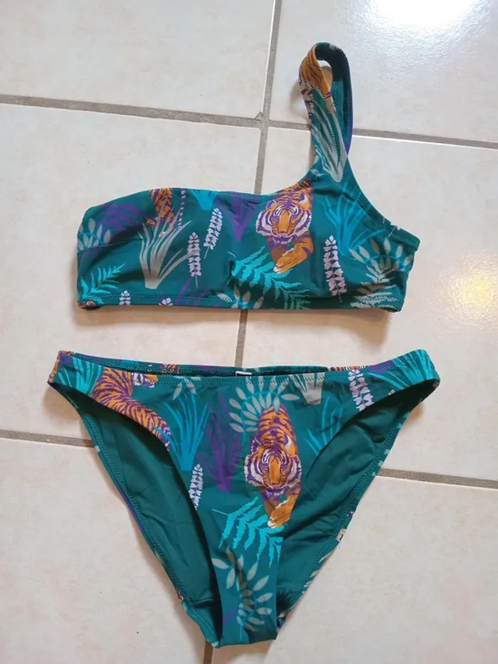 Maillot de bain 2 pièces turquoise imprimé tigre Etam taille 36