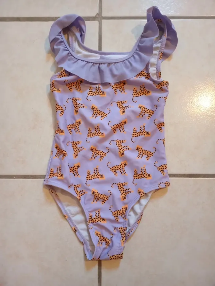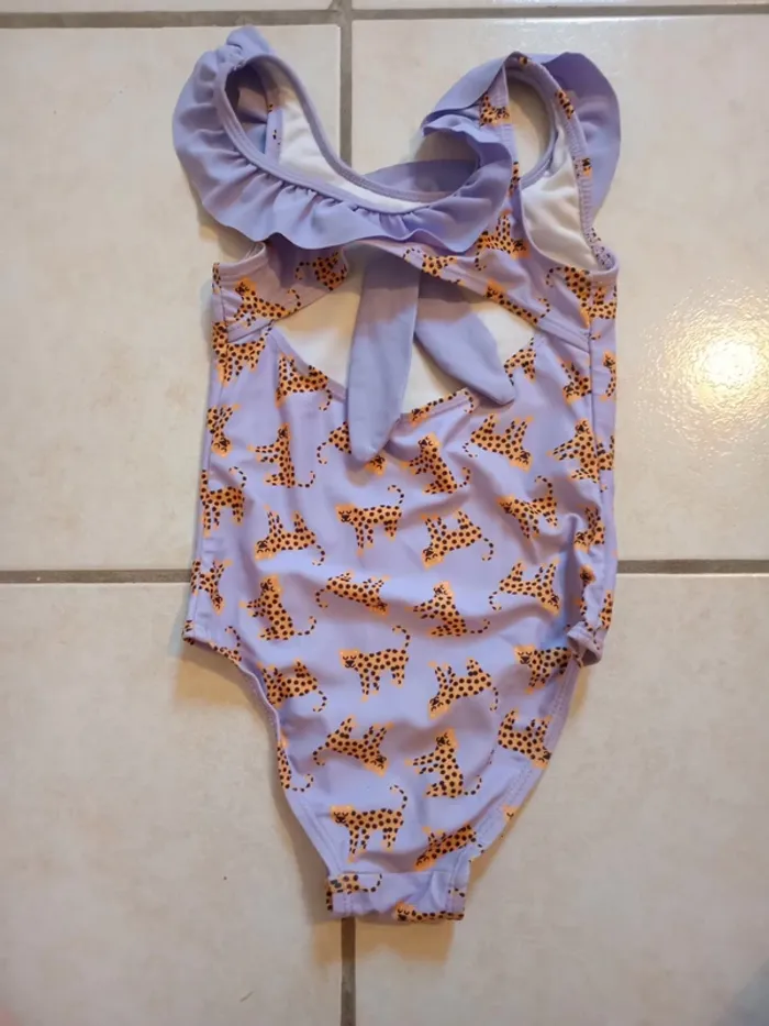 Maillot de bain 1 pièce Zeeman taille 4-6 ans mauve imprimé léopard - photo numéro 1