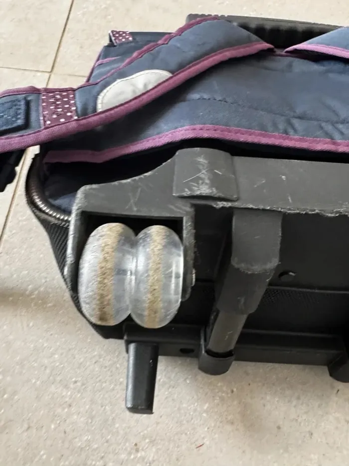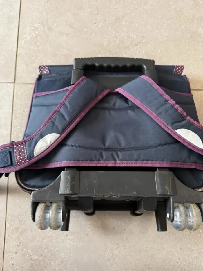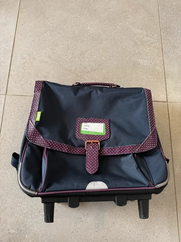 Cartable à roulettes Tann's, bon état mais il ya quelques marques d'usures, 37x28cm