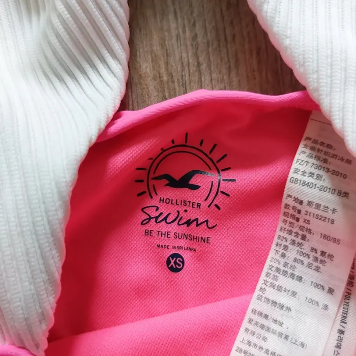 Maillot de bain 1 pièce Hollister taille XS blanc et rose très bon état (Maillot1007)