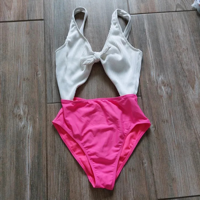 Maillot de bain 1 pièce Hollister taille XS blanc et rose - photo numéro 1