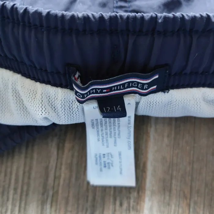Short de bain Tommy hilfiger bleu marine taille 12/14 ans bon état sauf un petit trou (voir photo )avec cordon (Maillot946)