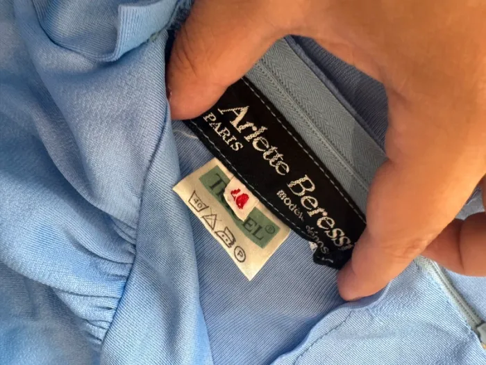 Longue robe bleue Arlette Beressi, taille 40, tâché à l'arrière 140cm de long - photo numéro 3