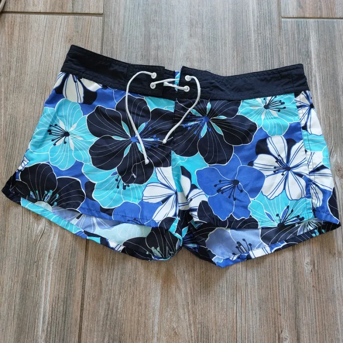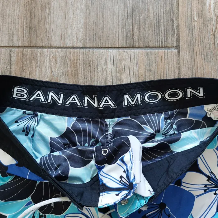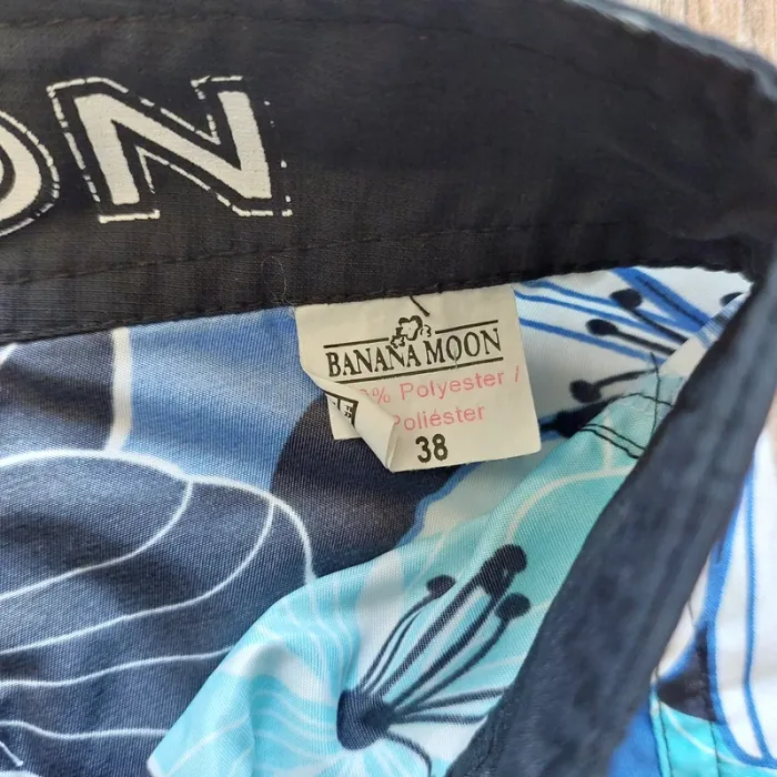 Short de bain Banana moon noir & bleu avec fleur taille 38 avec cordon taille à plat 38/40 très bon état (Maillot975)