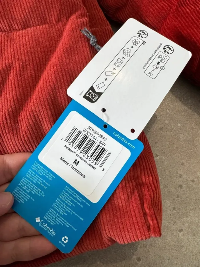 Doudoune en velours côtelé Columbia, neuve avec étiquette, taille M, rouge