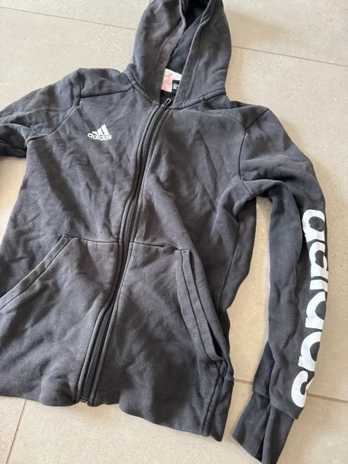 Gilet noir adidas, bon état, décoloré et quelques marques d'usures 12 ans