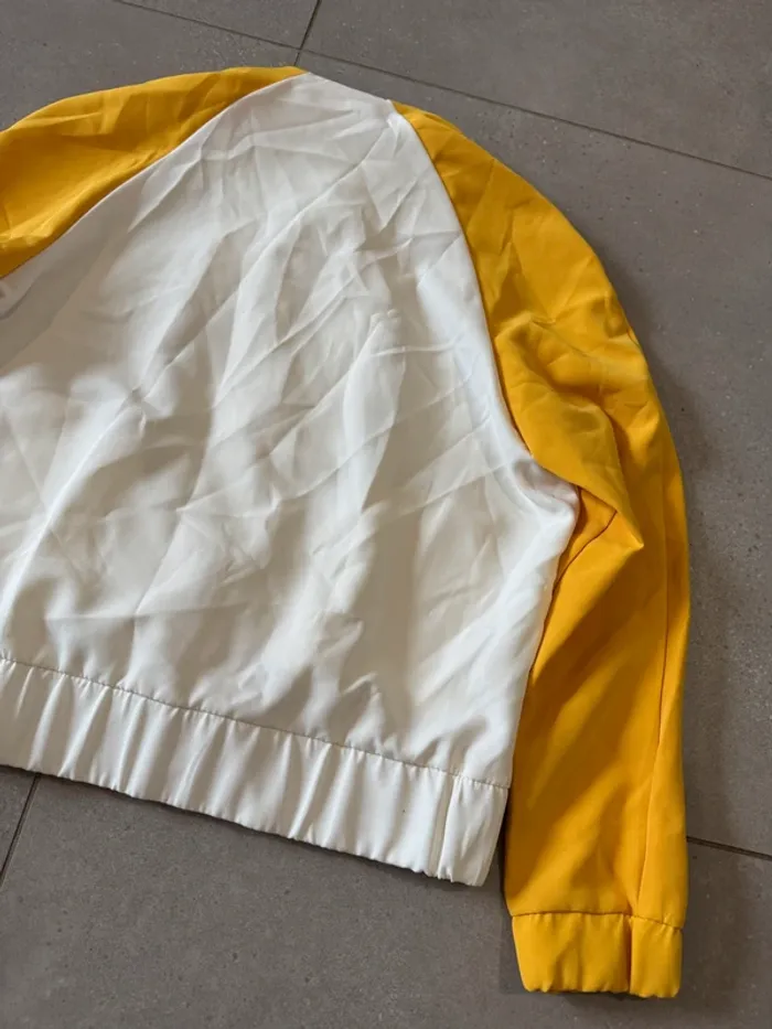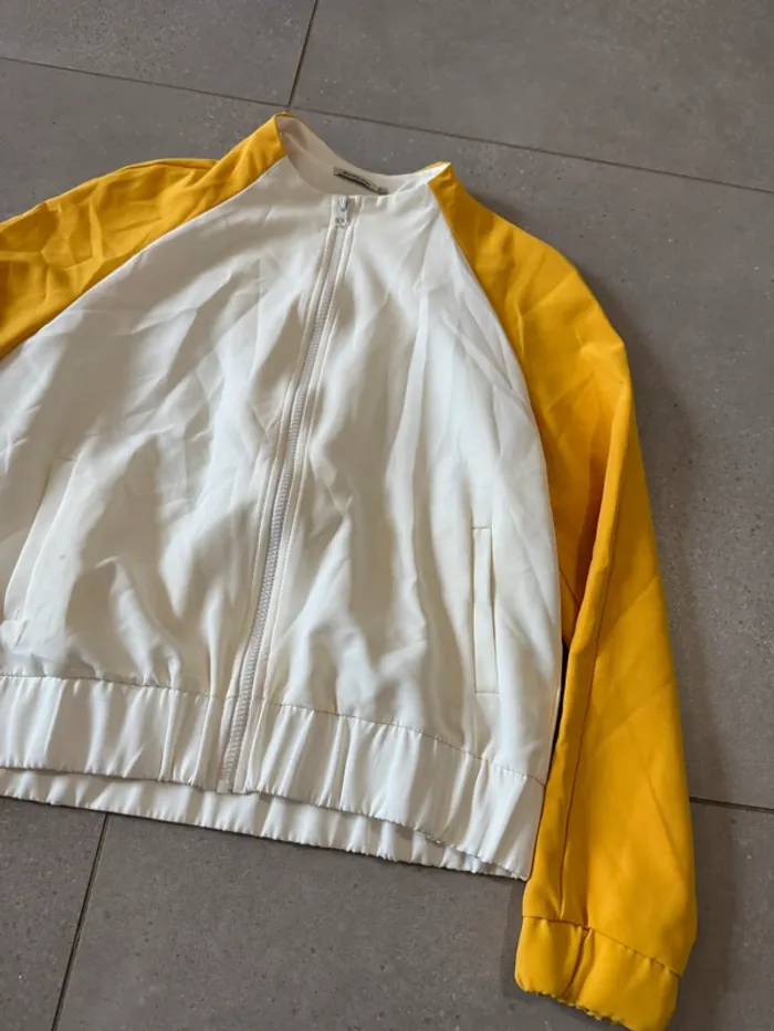 Veste blanche et jaune Stradivarius, taille L, bon état mais petites traces à l'avant - photo numéro 1