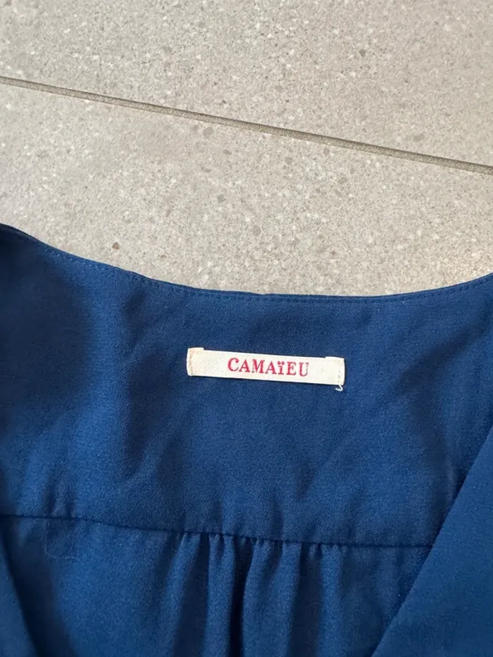 Robe bleu Camaieu, bon état mais à nettoyer, traces sous les aisselles, 3XL