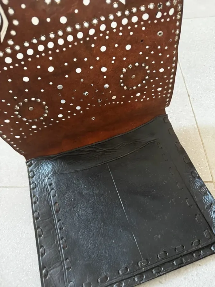 Sac à bandoulière vintage en cuir, bon état 30x27cm - photo numéro 4