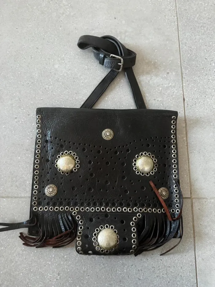 Sac à bandoulière vintage en cuir, bon état 30x27cm - photo numéro 2