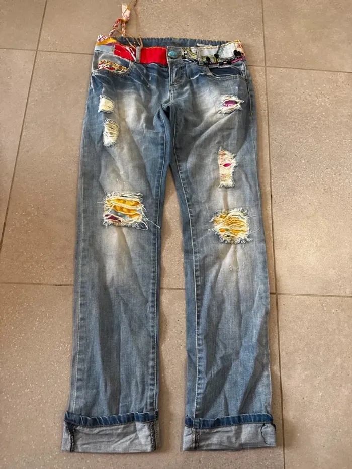 Jean multicolore Desigual, très bon état , taille 36 38x95cm - photo numéro 1