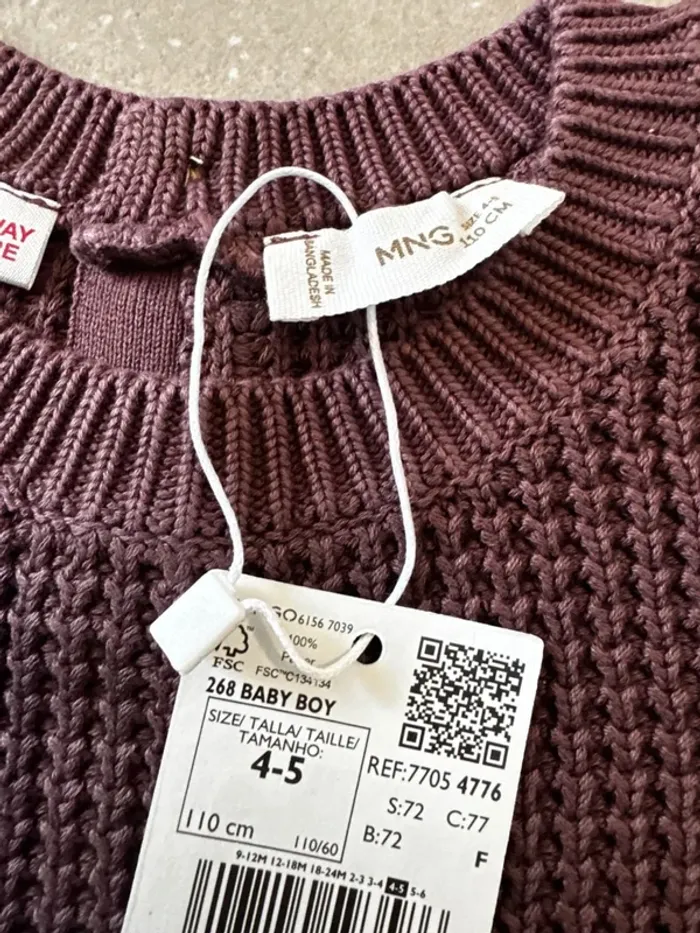 Pull-over combiné maille marron Mango, taille 4/5 ans, neuf valeur 23€
