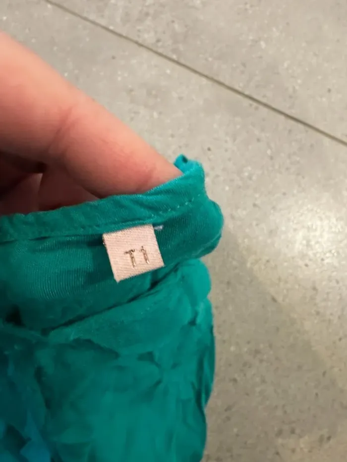 Haut bleu canard, taille 1 (S) ample, très bon état