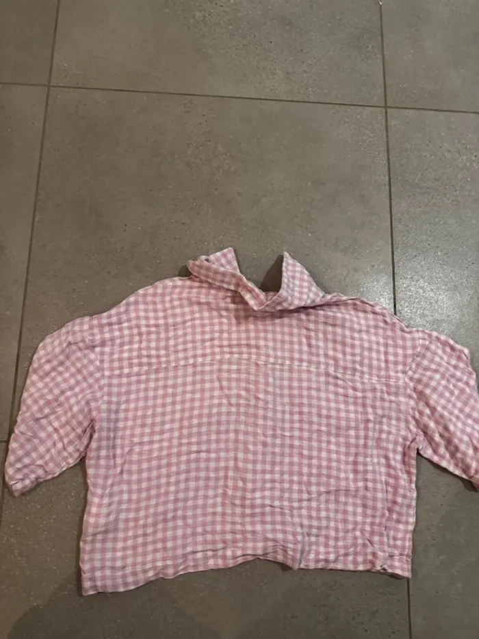 Chemise ample mais courte rose et blanche Pimkie, très bon état, taille M