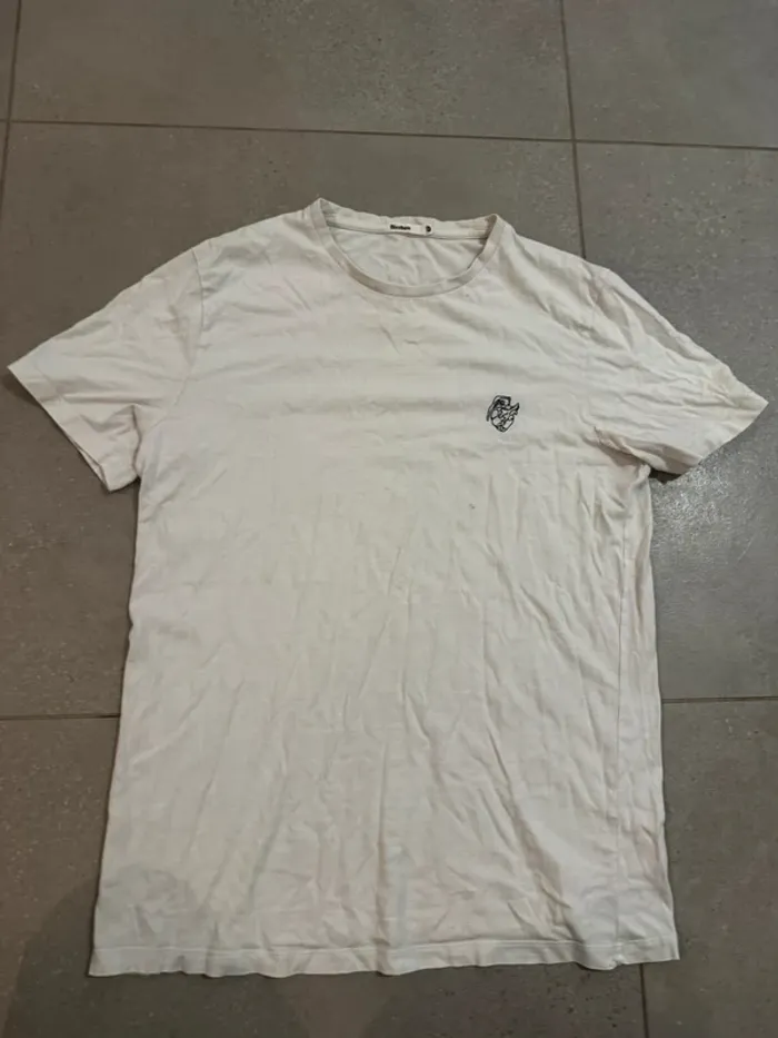 T-shirt blanc Bizzbee, taille L, bon état mais il ya des petites tâches à l'avant
