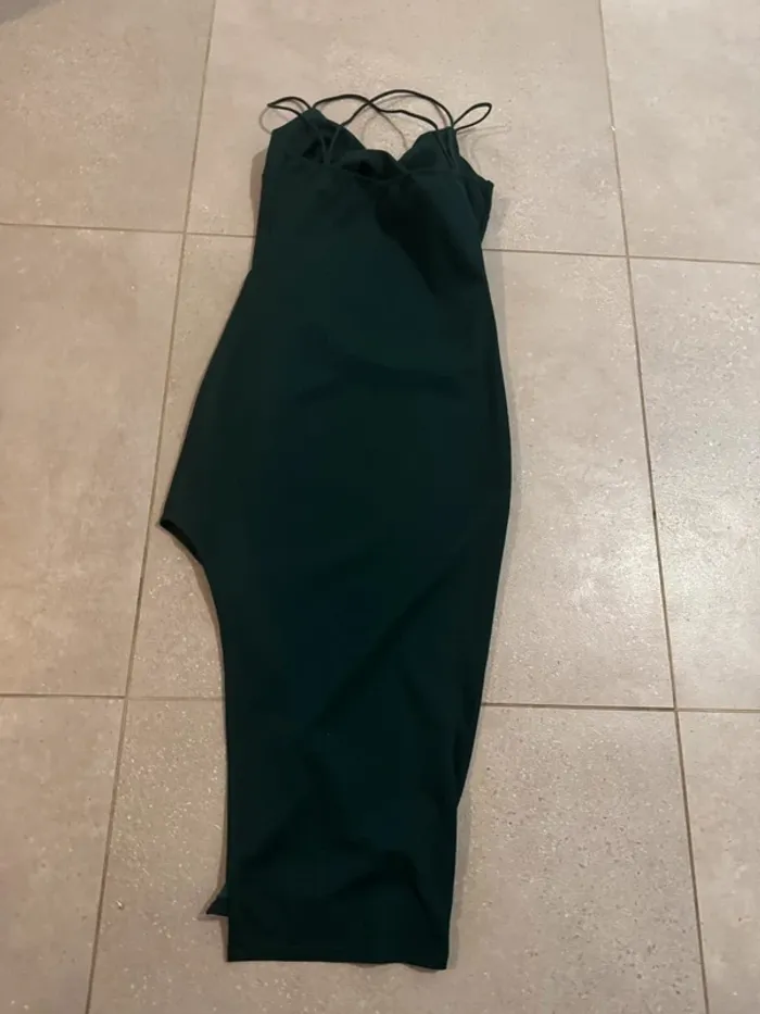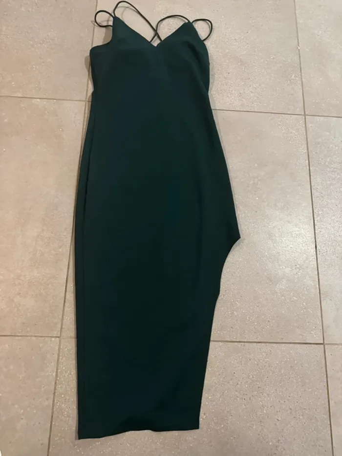 Robe de soirée verte foncé, très bon état, taille L 110cm de longueur - photo numéro 2
