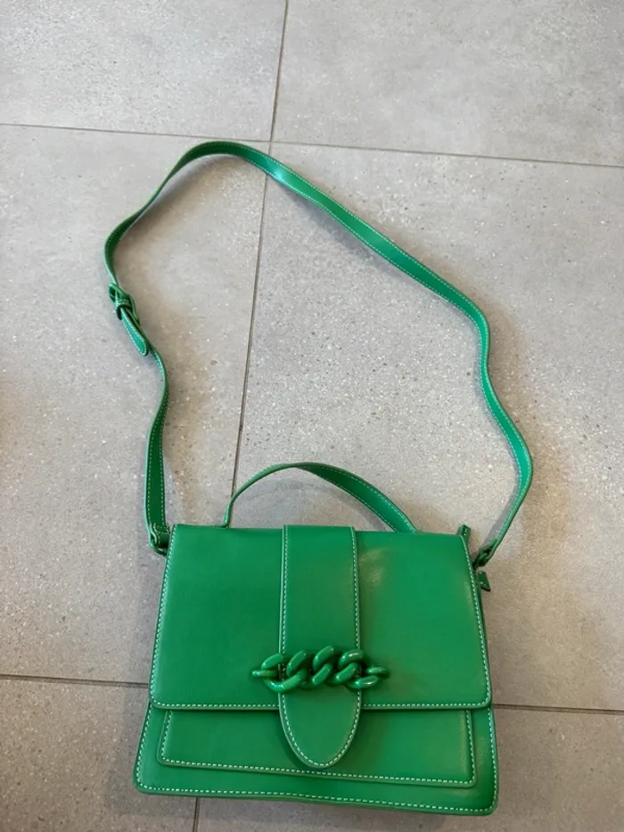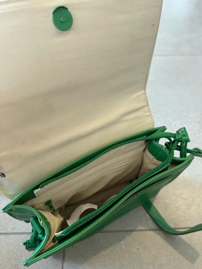 Sac à bandoulière vert, bon état mais il y a quelques tâches à l'intérieur 26*17cm
