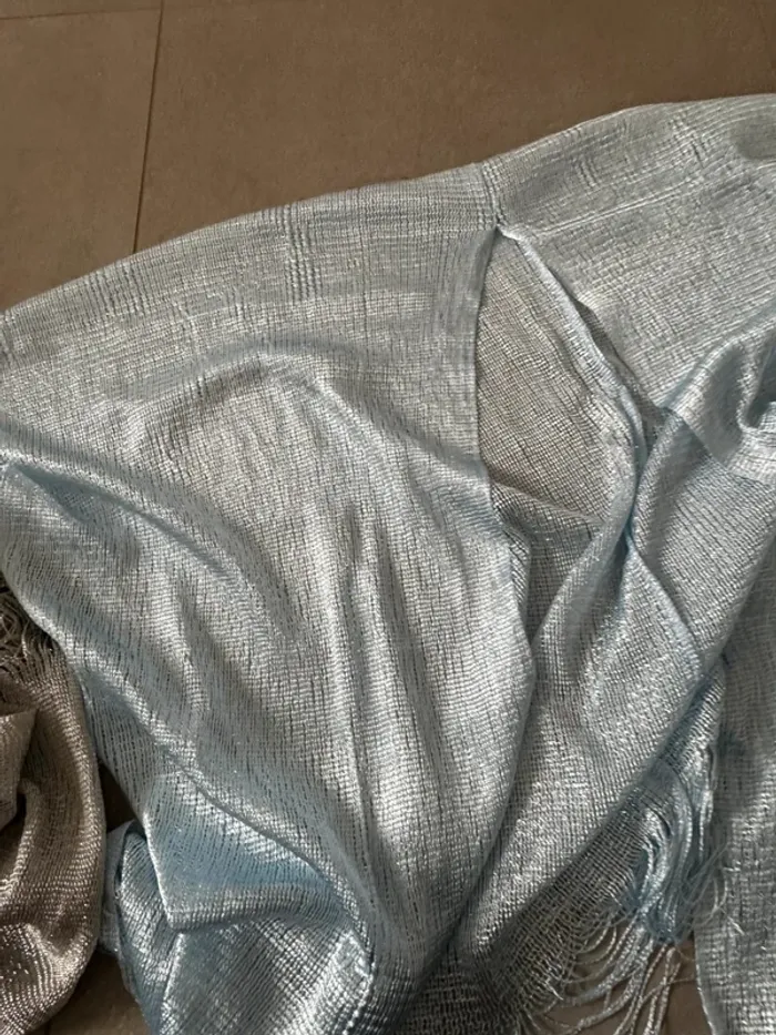 Lot de 2 ponchos pailletés, 1 gris + 1 bleu, très bon état, taille unique - photo numéro 3