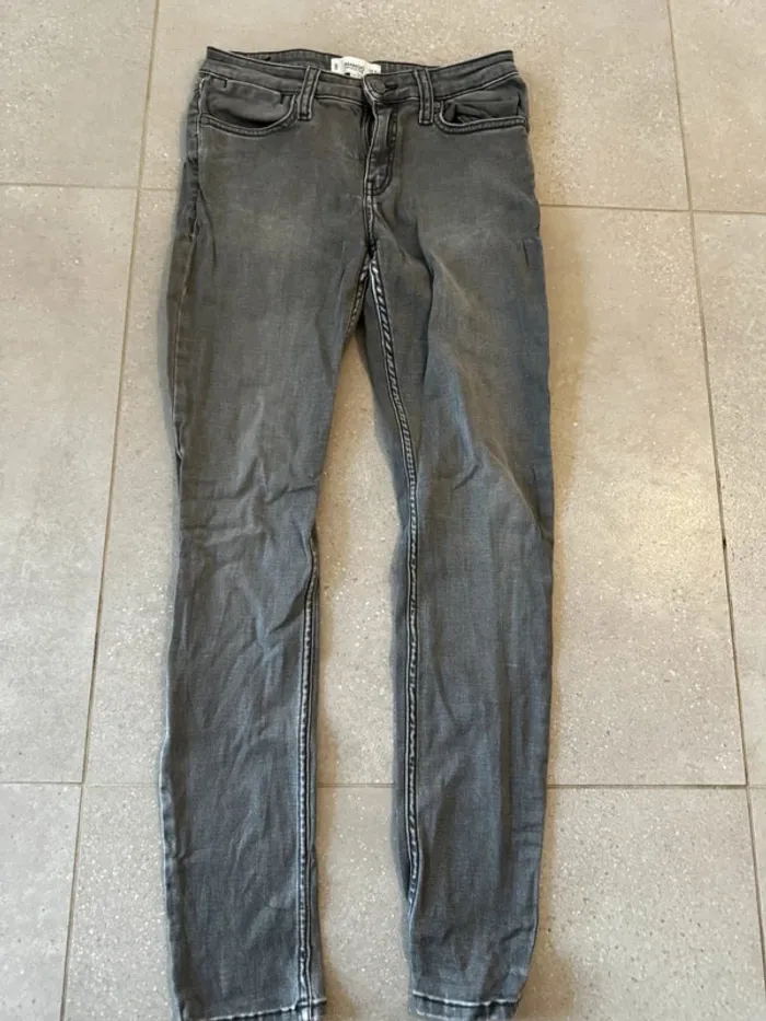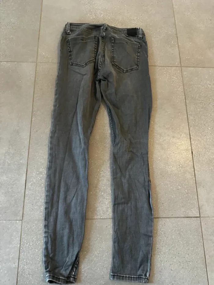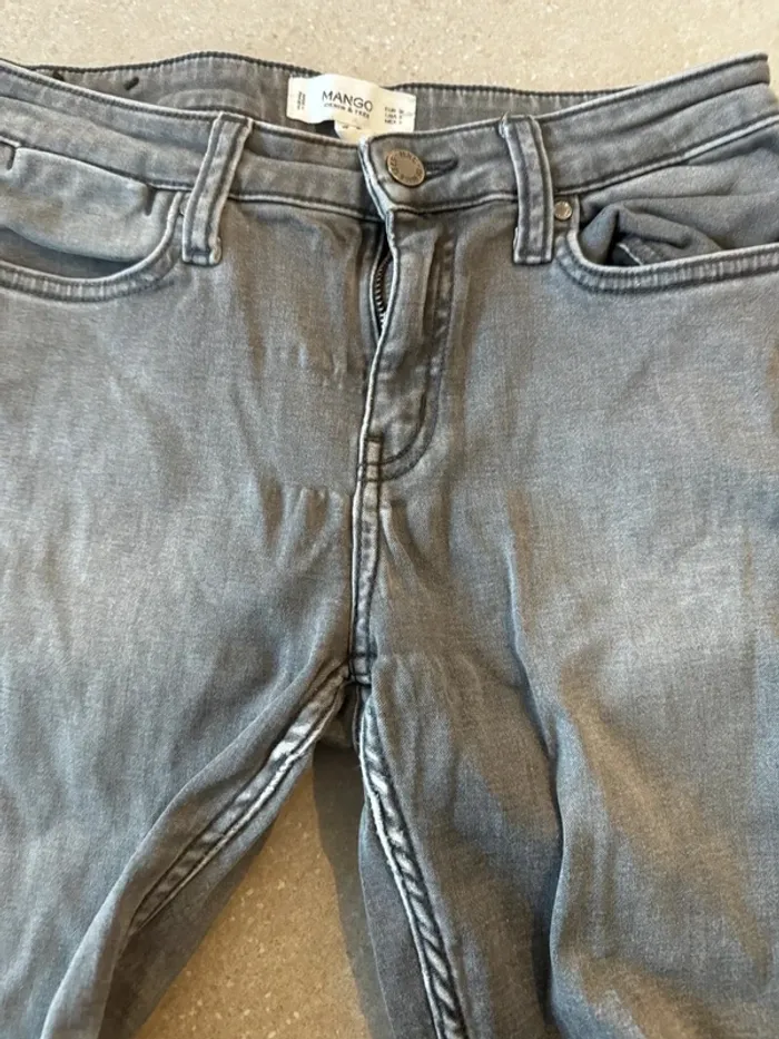 Jean Mango gris, taille 38, bon état mais quelques marques 38x95cm