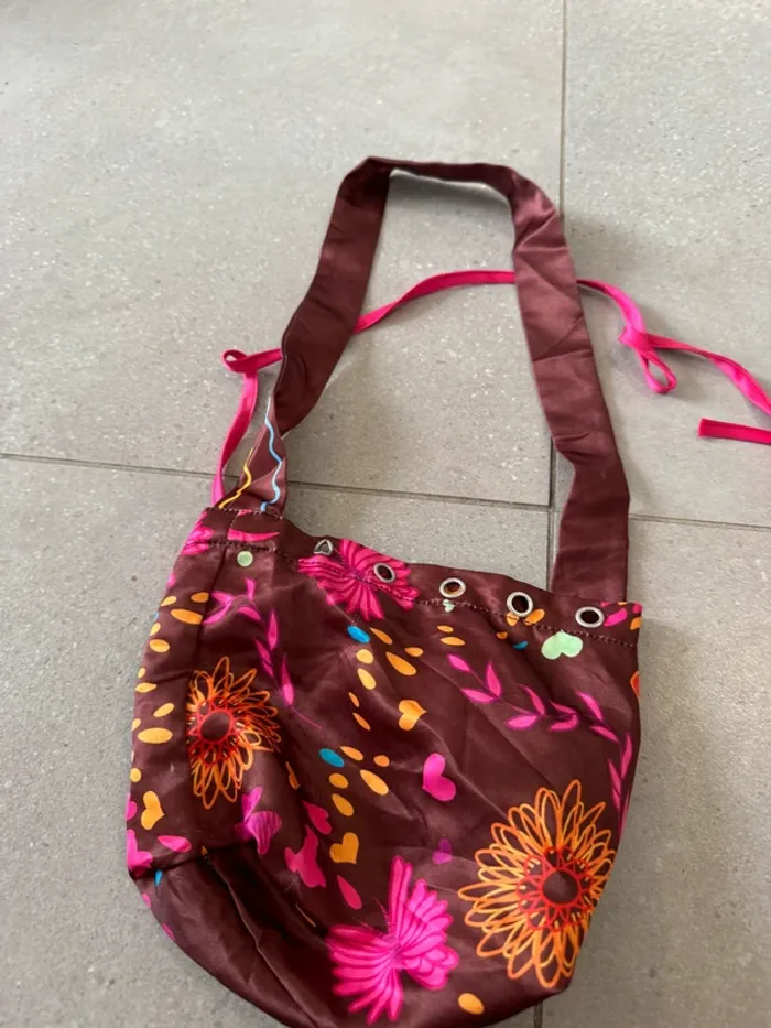 Petit sac porté épaule multicolore, bon état mais un petit trou est abimé, il y a un petit accroc 16x20cm (mv1946)
