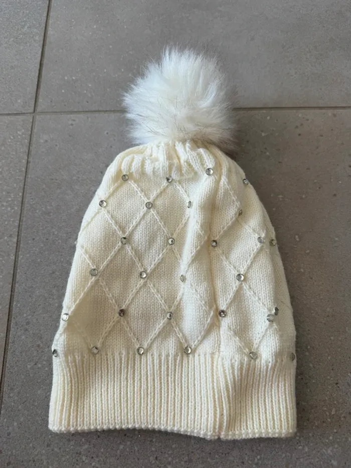 Bonnet à pompon blanc, très bon état, taille unique - photo numéro 3