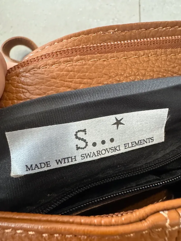 Sac à bandoulière marron en cuir made with swarovski elements, neuf,  23*22cm - photo numéro 5
