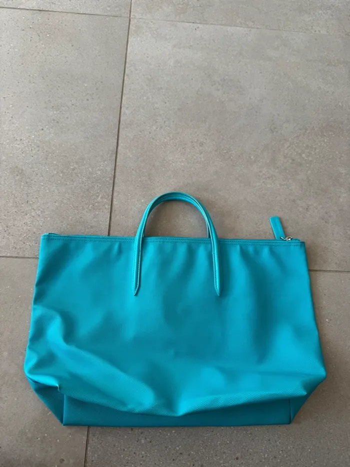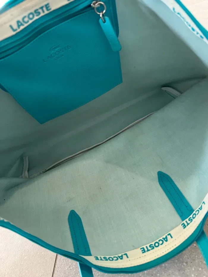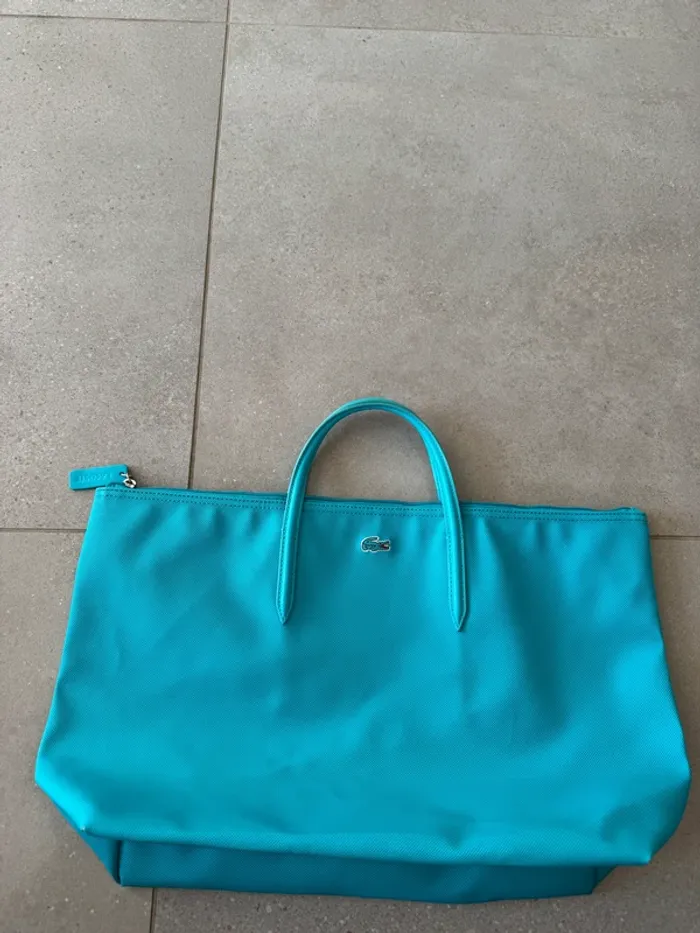 Sac lacoste bleu clair, bon état mais il y a quelques marques dans les coins, 48*28cm