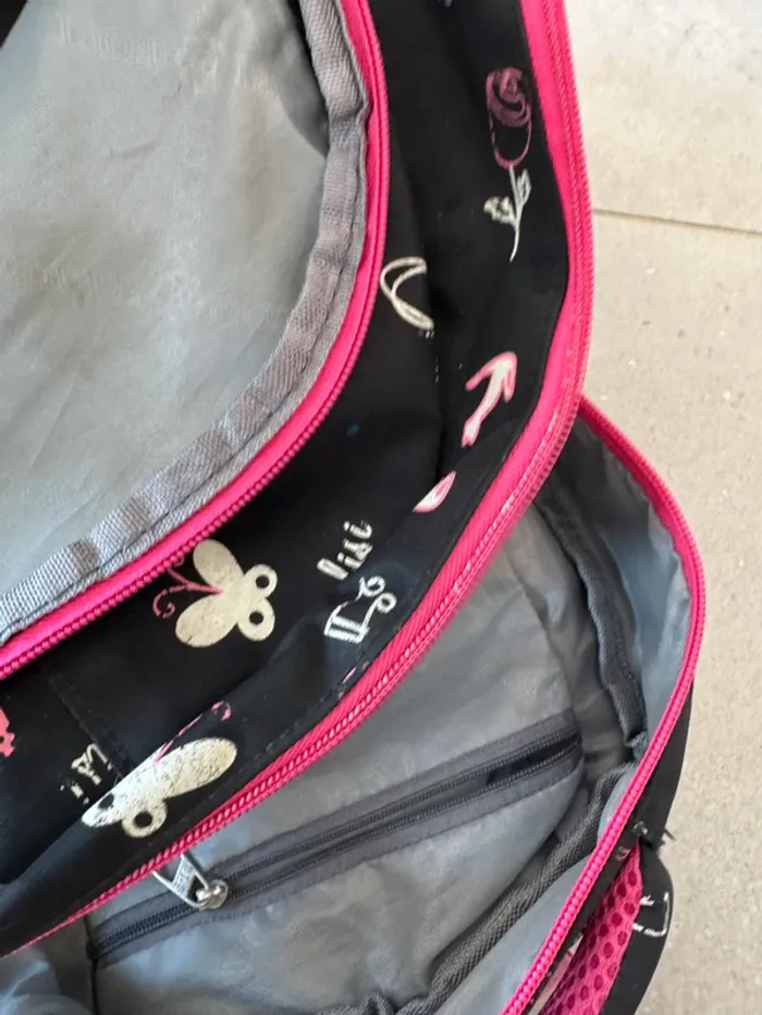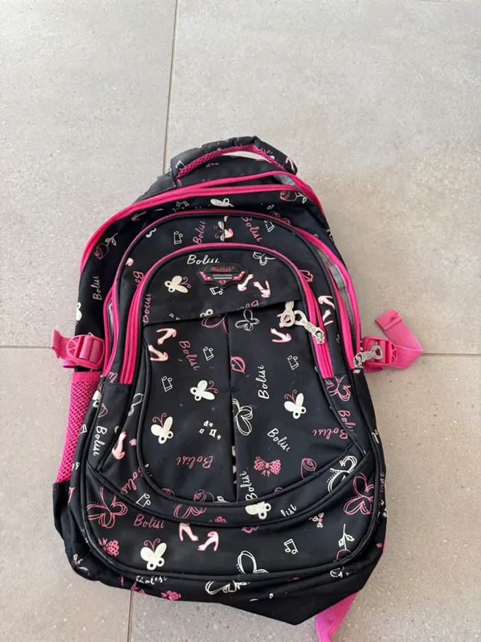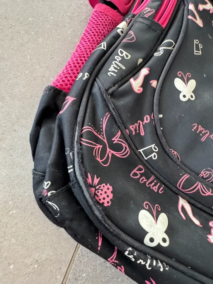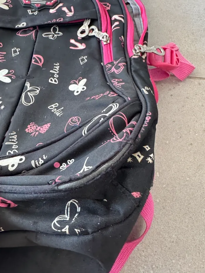 Sac à dos rose et noir Bolisi, il y a plusieurs défauts, 30*45cm