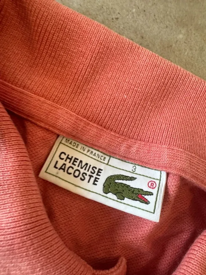 Polo lacoste à manches longues rose, très bon état ,vintage, taille 3 (S) - photo numéro 5