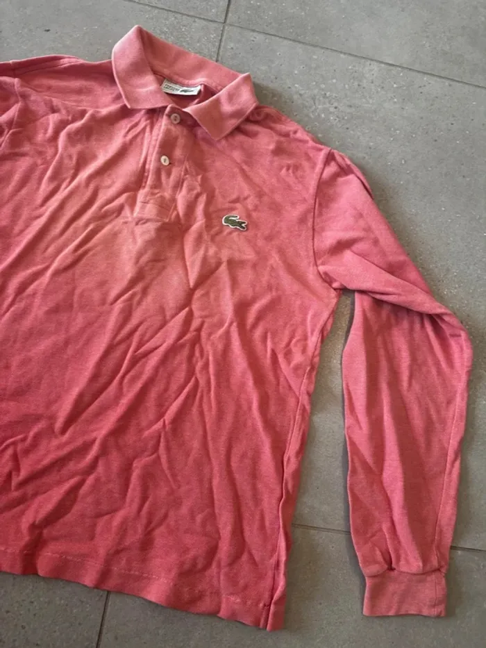 Polo lacoste à manches longues rose, très bon état ,vintage, taille 3 (S) - photo numéro 1