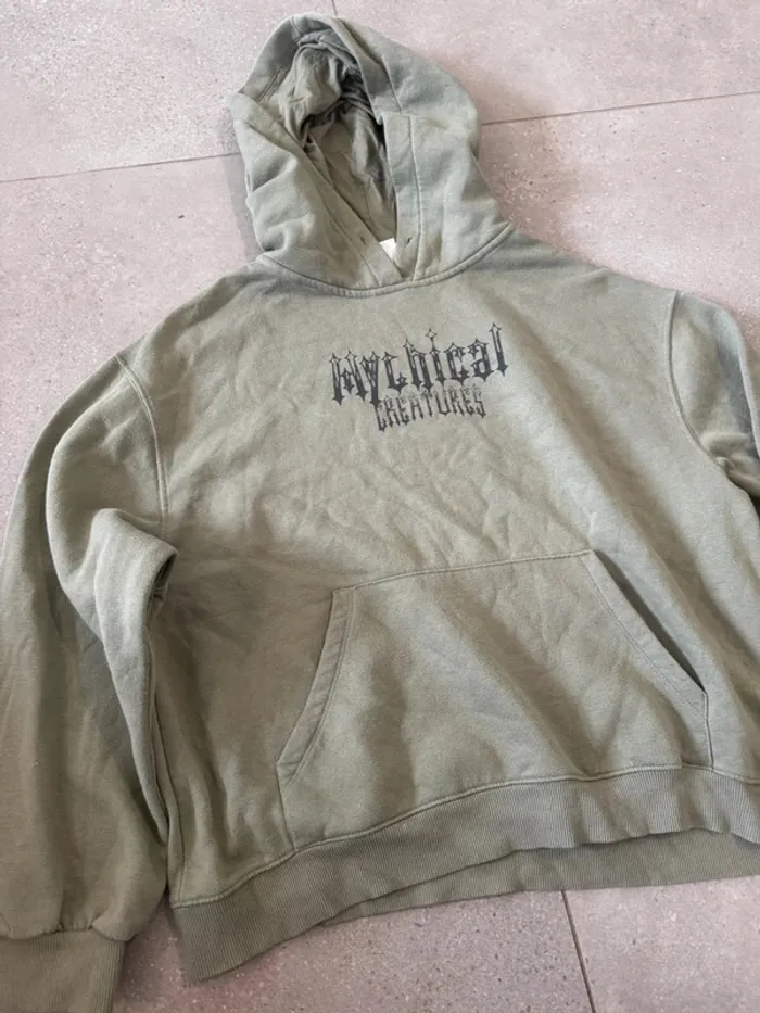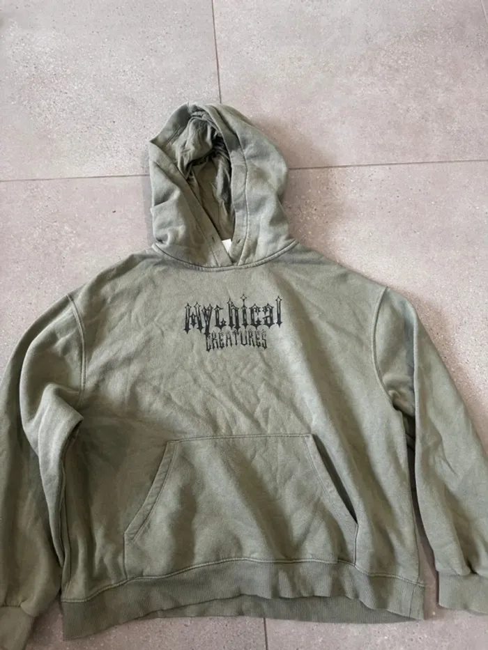 Pull vert Bershka, bon état mais il n'y a plus de cordon, taille XS