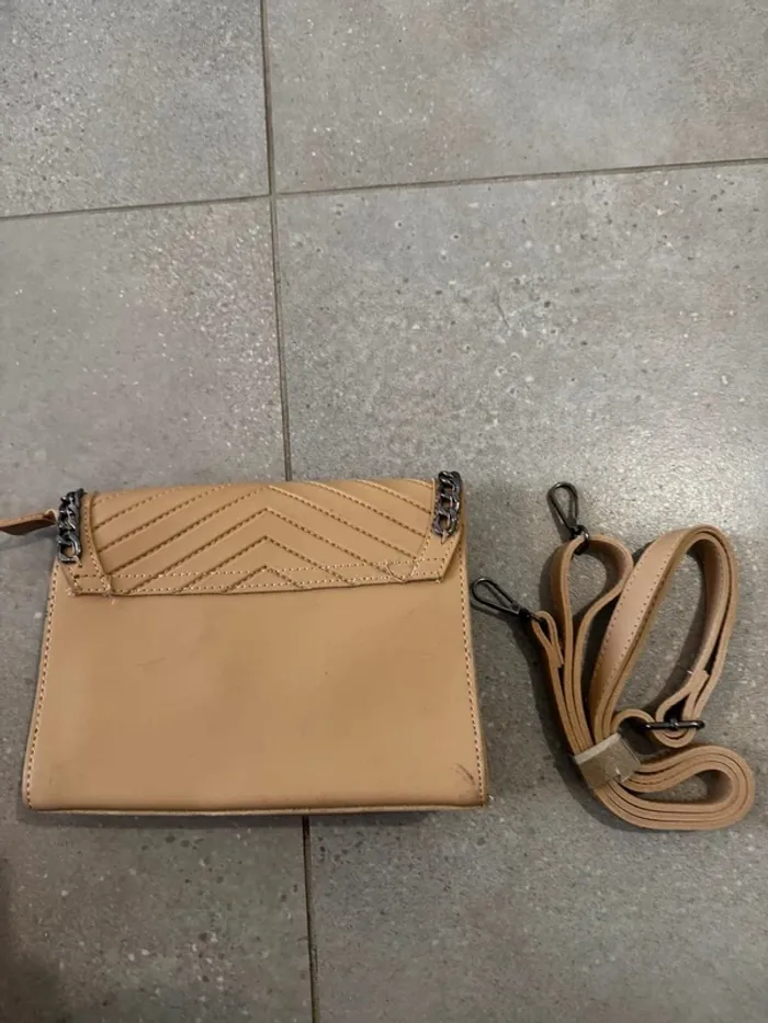 Sac à bandoulière marron, bon état mais quelques traces à l'arrière, 21x14cm - photo numéro 2