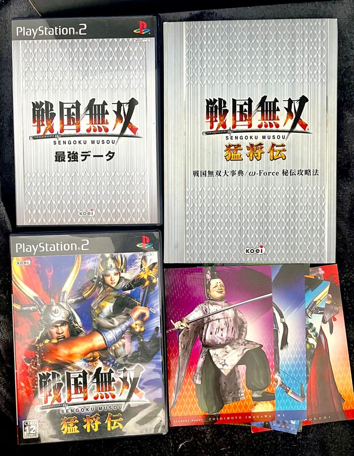 Samurai Warriors Sengoku Musou Mushouden Treasure Box Vendu avec la boite et la notice Version jap necessite un console japonaise ou un adaptateur Version collector contient le jeux ps2 le making off, des cartes de personnages, un livre avec la presentation des personnages, et une figurines le tout quasi neuf juste le fourreau et un peu user envoi soigne en 48h Max
