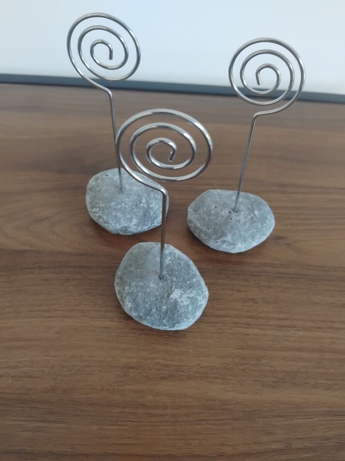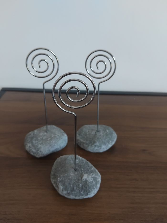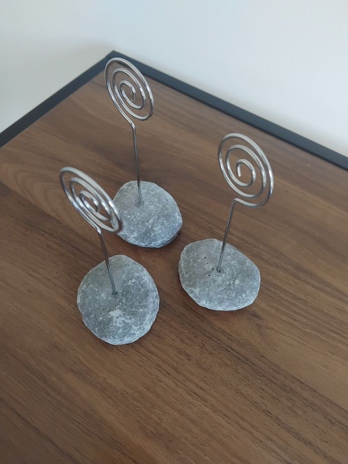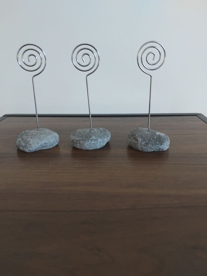 Lot de 3 portes photos. Une spirale pour accrocher la photo et forme pierre au socle. #décorationnade3033 #accessoiremaisonnade3033 #accessoirefillenade3033 #bazarnade3033