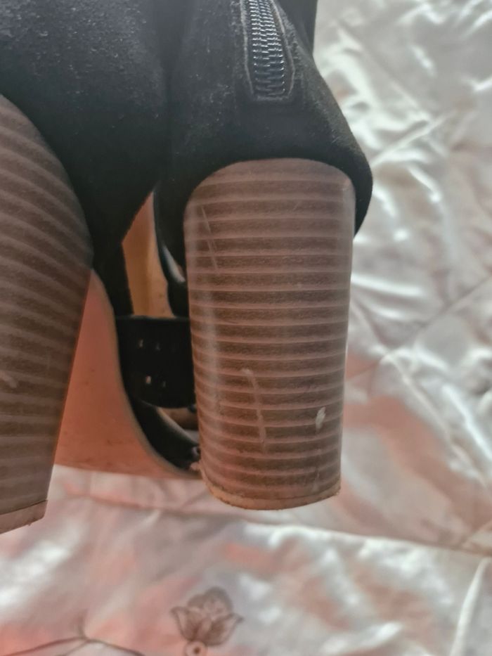 Superbes sandales hautes genre bottines ouvertes Ornée de tissu genre daim et zones troutrou genre dentelle décorative Talon genre bois de 8cms de hauteur Fermeture par zip a l'arrière Les talons ont des traces d'usure, comme la semelle du dessous et le bout, mais cela ́ne se voit kasiment pas une fois portée (voir les photos en détail) N'hésitez pas a créer un lot pour profiter des réductions actives dès 2 articles #naya59199chaussure #naya59199femme #naya59199chaussurefemme #naya59199pointure40