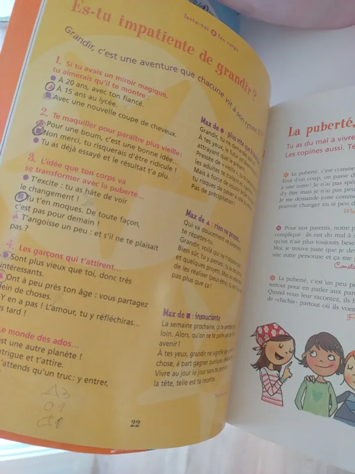 Entre le très bon état et le bon état, couverture usé et quizz complété sinon intact Idéal pour les futurs ados