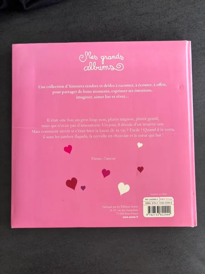 Livre Auzou, Collection Mes grands albums. Le loup qui cherchait une amoureuse. Présence de quelques rayures sur la couverture mais l’intérieur du livre est en très bon état. ❗️📦 ATTENTION : PAS D’ENVOI VIA « VINTED-GO » 📦 💡- Pensez à faire un lot d’articles dans mon dressing pour réduire vos frais 🙂 ➡️ Retrouvez d’autres livres de la même collection dans mon dressing en utilisant le hashtag #am3liiialeloup (pensez à effacer vos filtres pour que cela fonctionne) #am3liiialivres #am3liiialeloup #leloup #amour #amoureux #amoureuse #mesptitsalbums #auzou #enfant