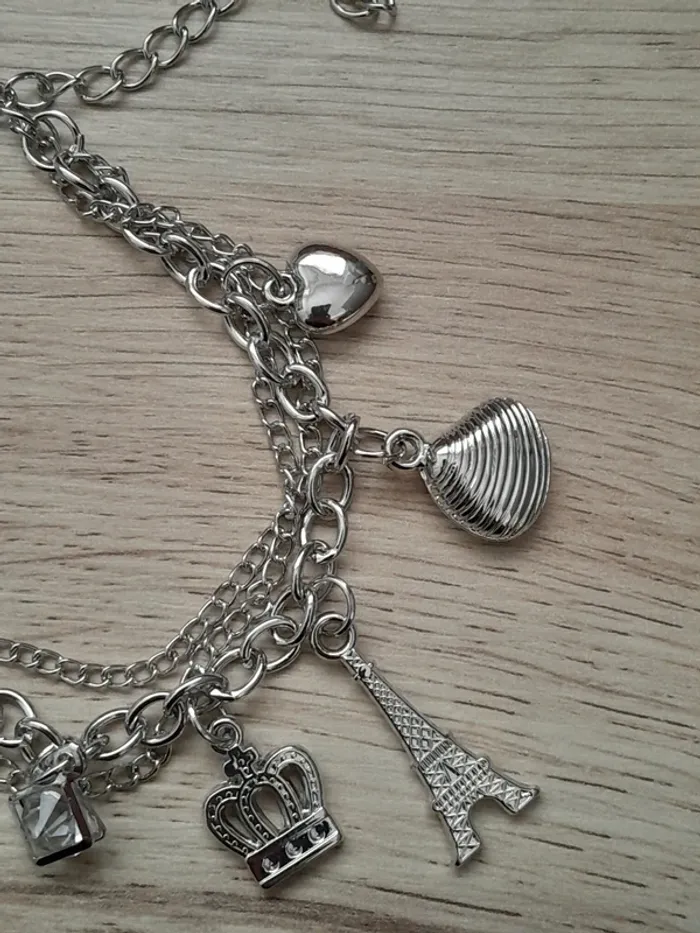 Bracelet ajustable, à breloques "Paris",  style Boho-Chic, couleur argentée - photo numéro 2