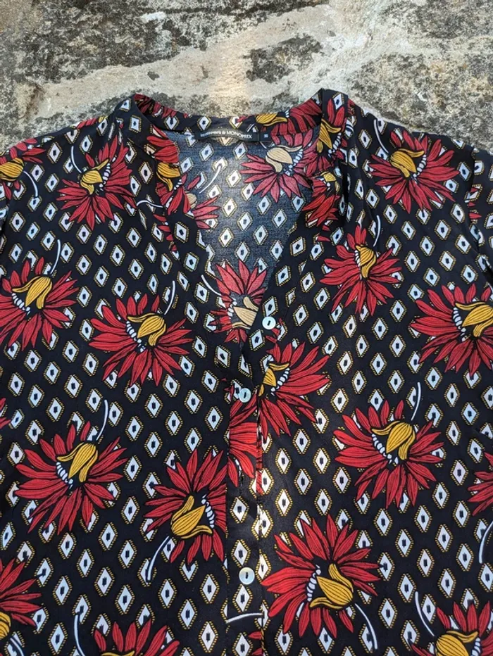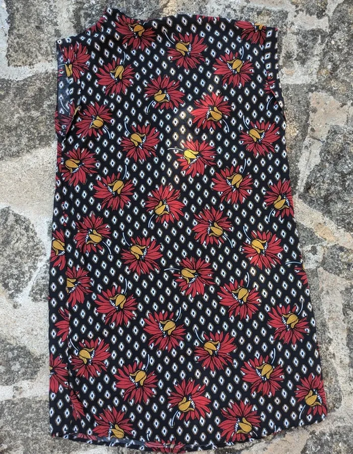 Robe courte à fleurs rouge et jaune, monoprix taille 36. Parfait état.