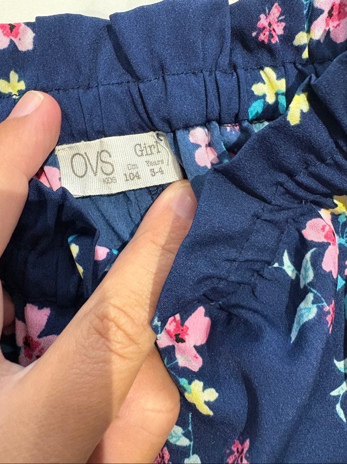 Pantalon fin bleu/rose fleurs OVS 3-4 ans 104cm